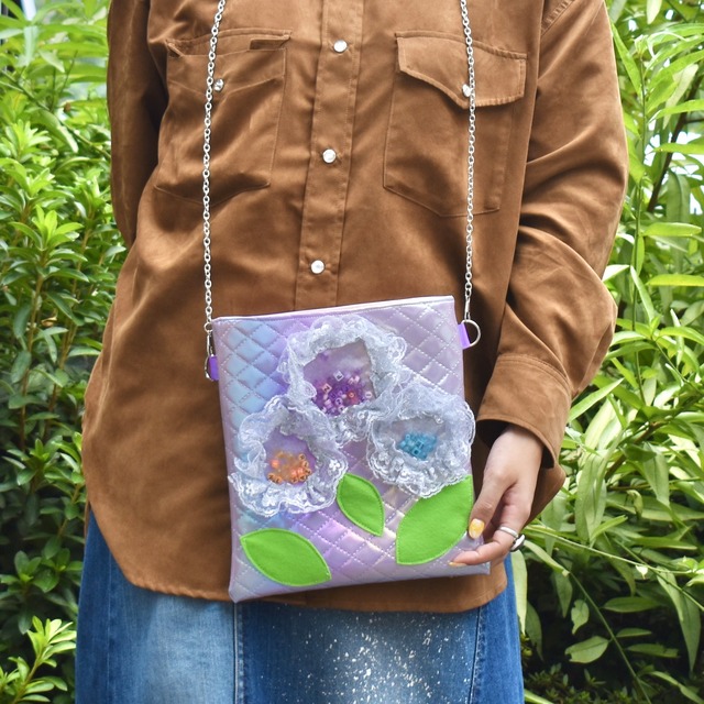 ぷっくり立体的な花びらのしかくいショルダーバッグ