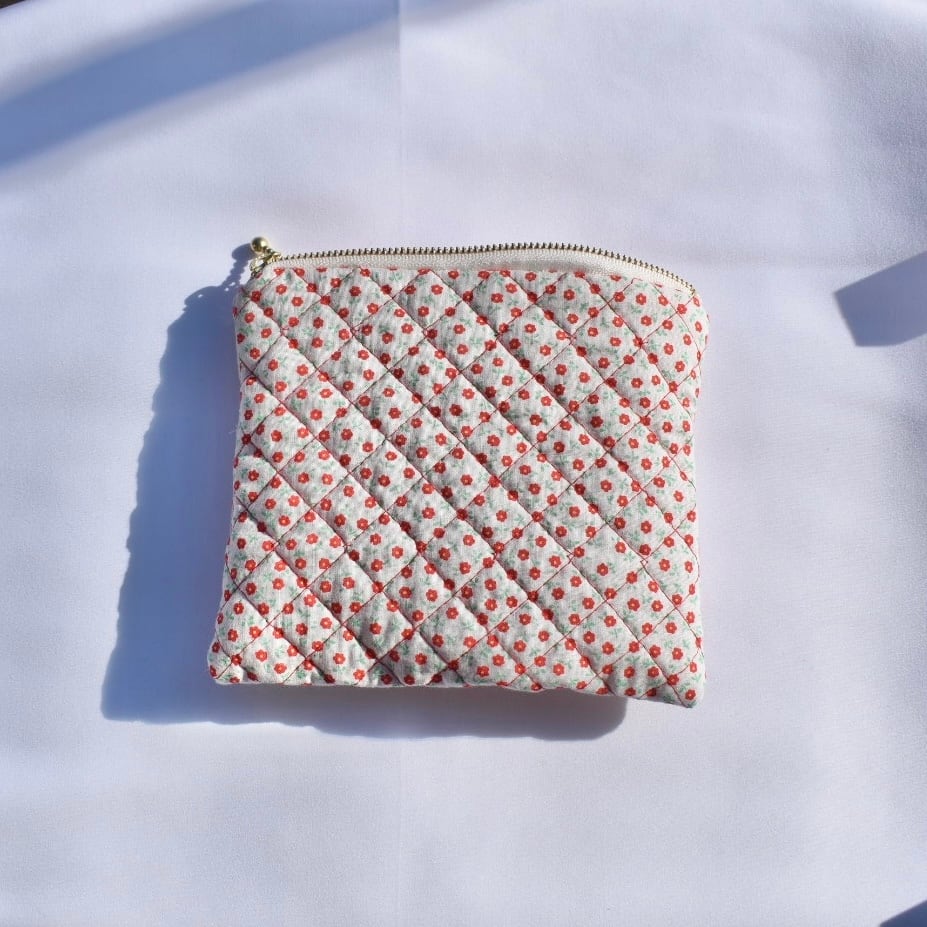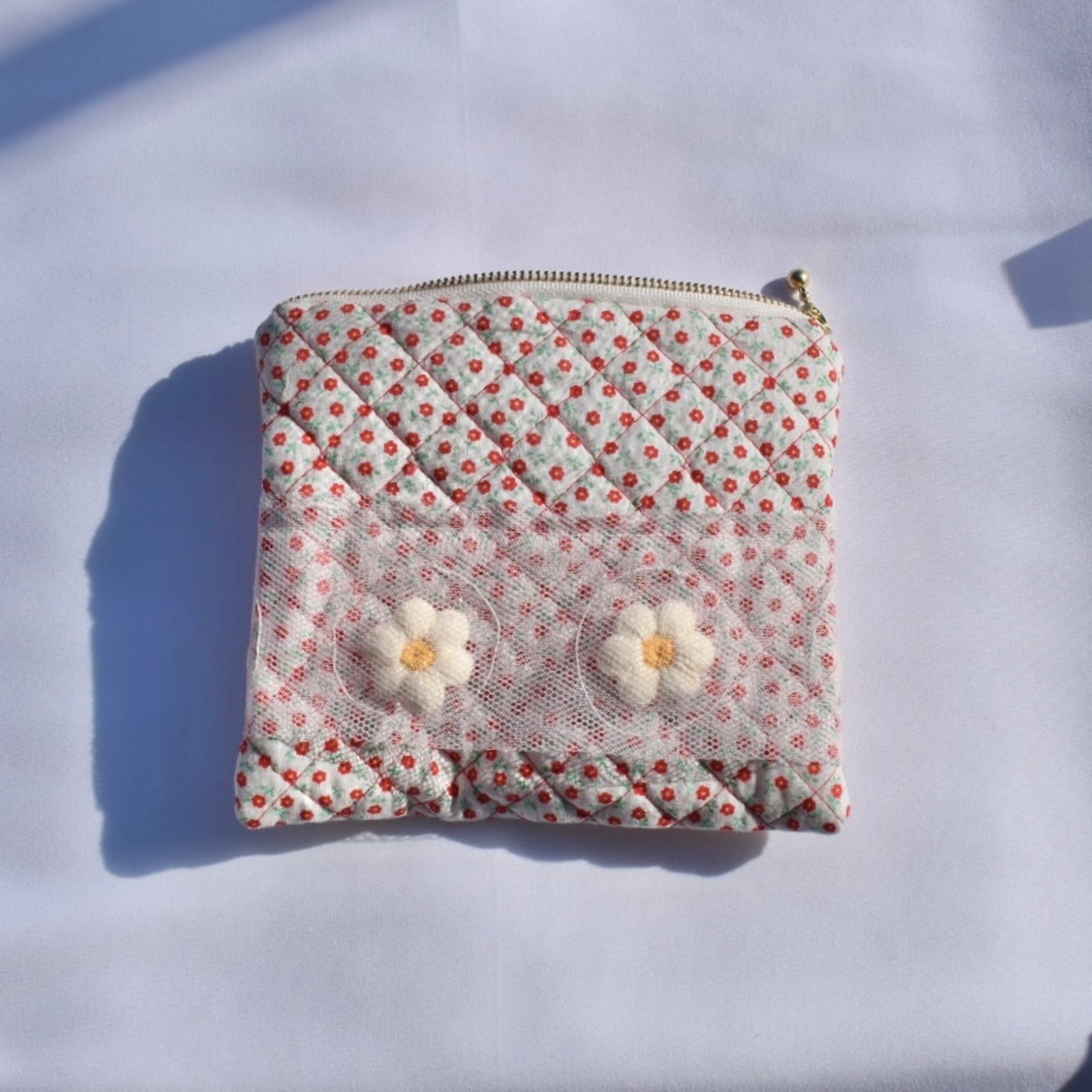 小さいお花と大きいお花のなつかしファスナーポーチ