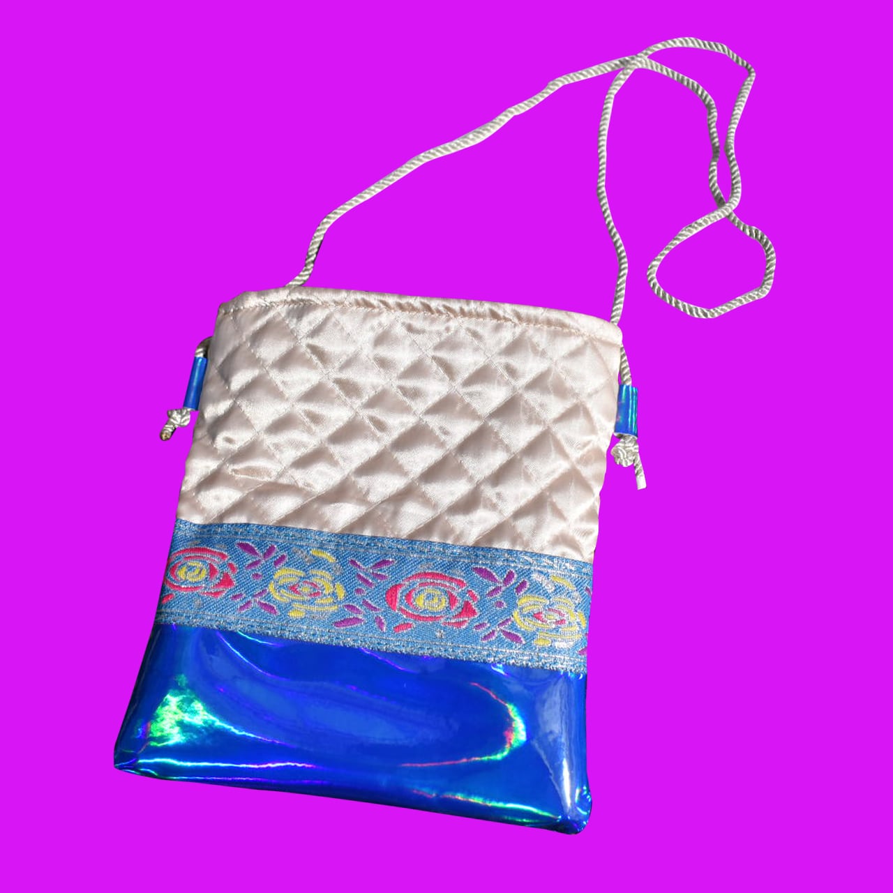 目を引く鮮やかな青が特徴的なショルダートートバッグです。まとまった色味で作ったので使いやすさも抜群。外見はシンプルですが華やかな裏地もこだわりポイントです。