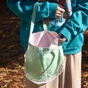 まあるいチェックとかこみレースのトートバッグ