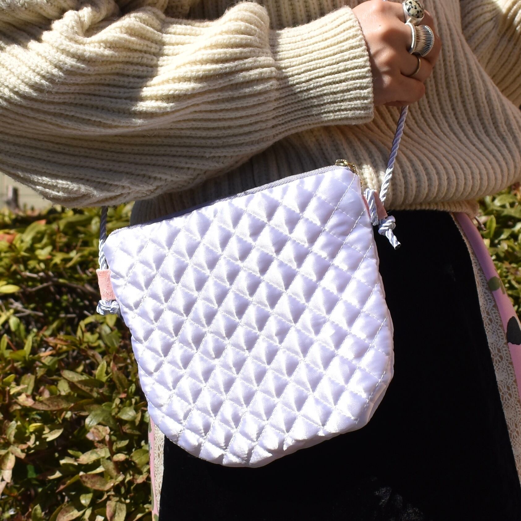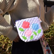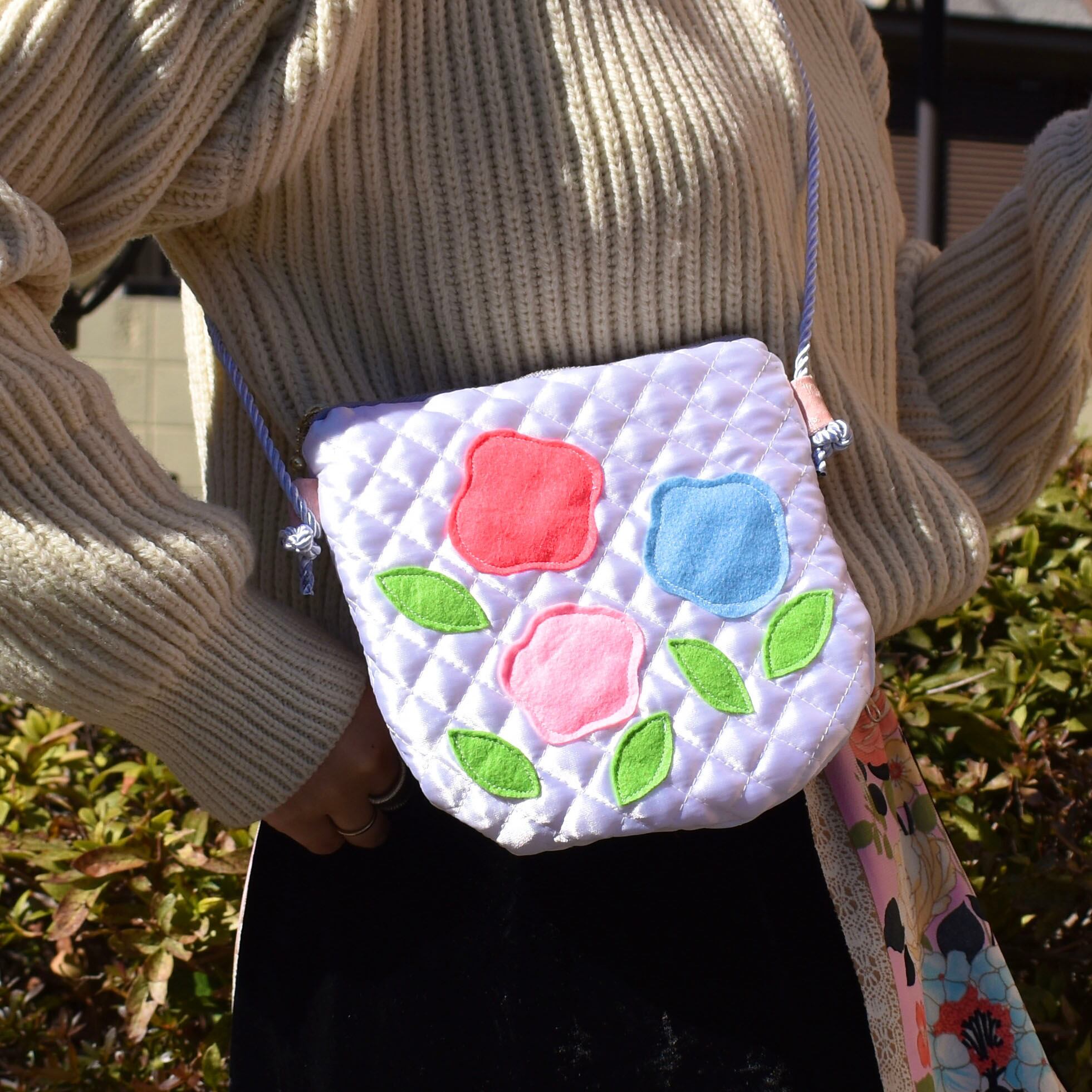 3つのお花をモチーフにしたショルダーバッグです。丸底で柔らかい印象に。
