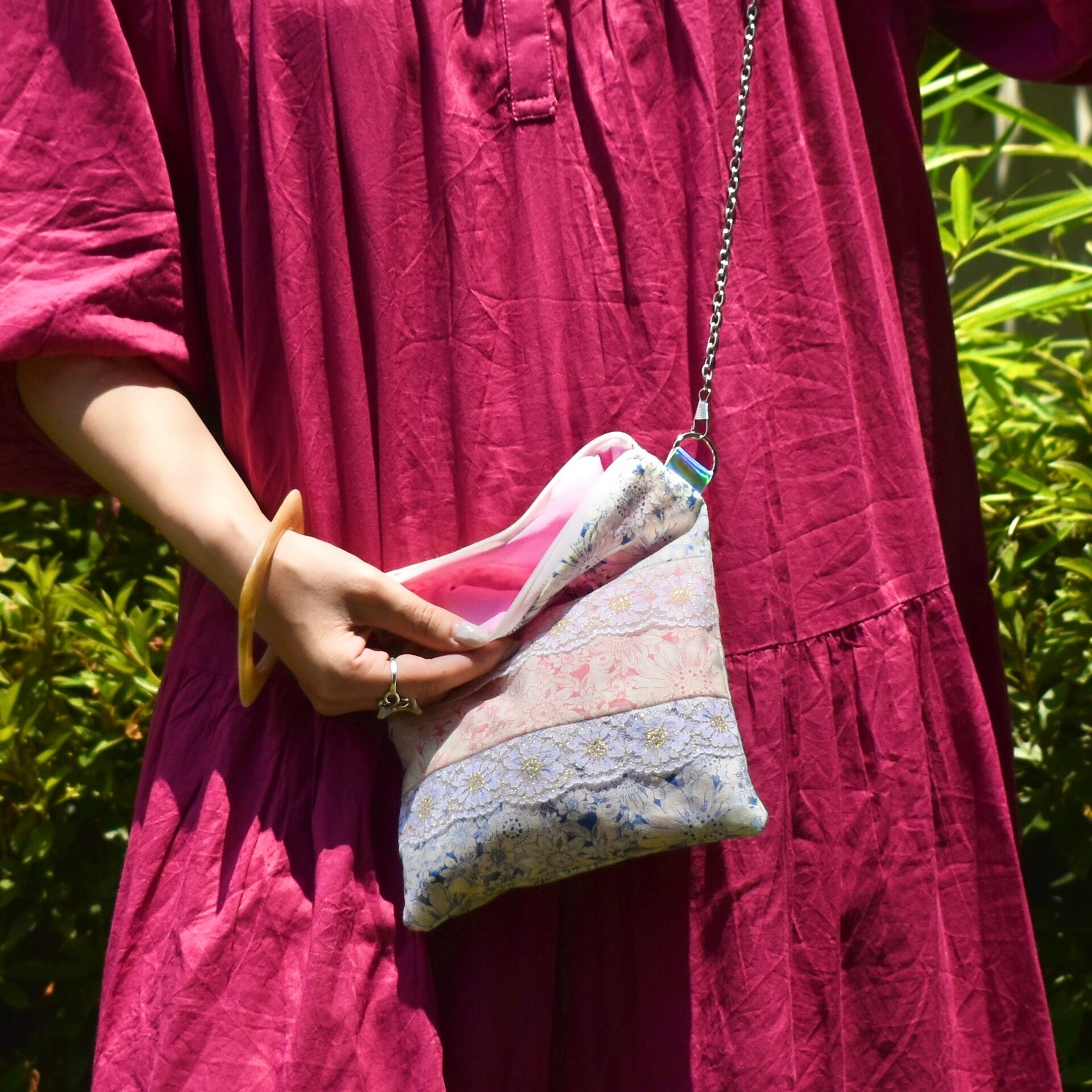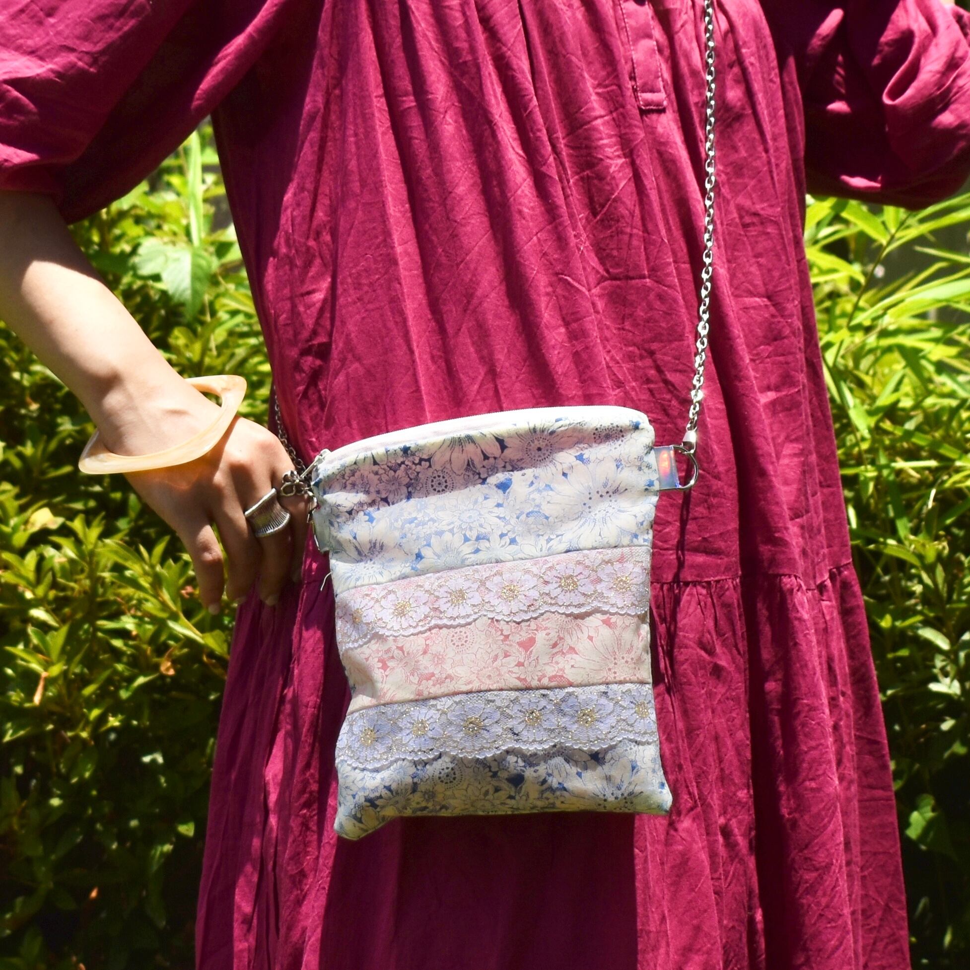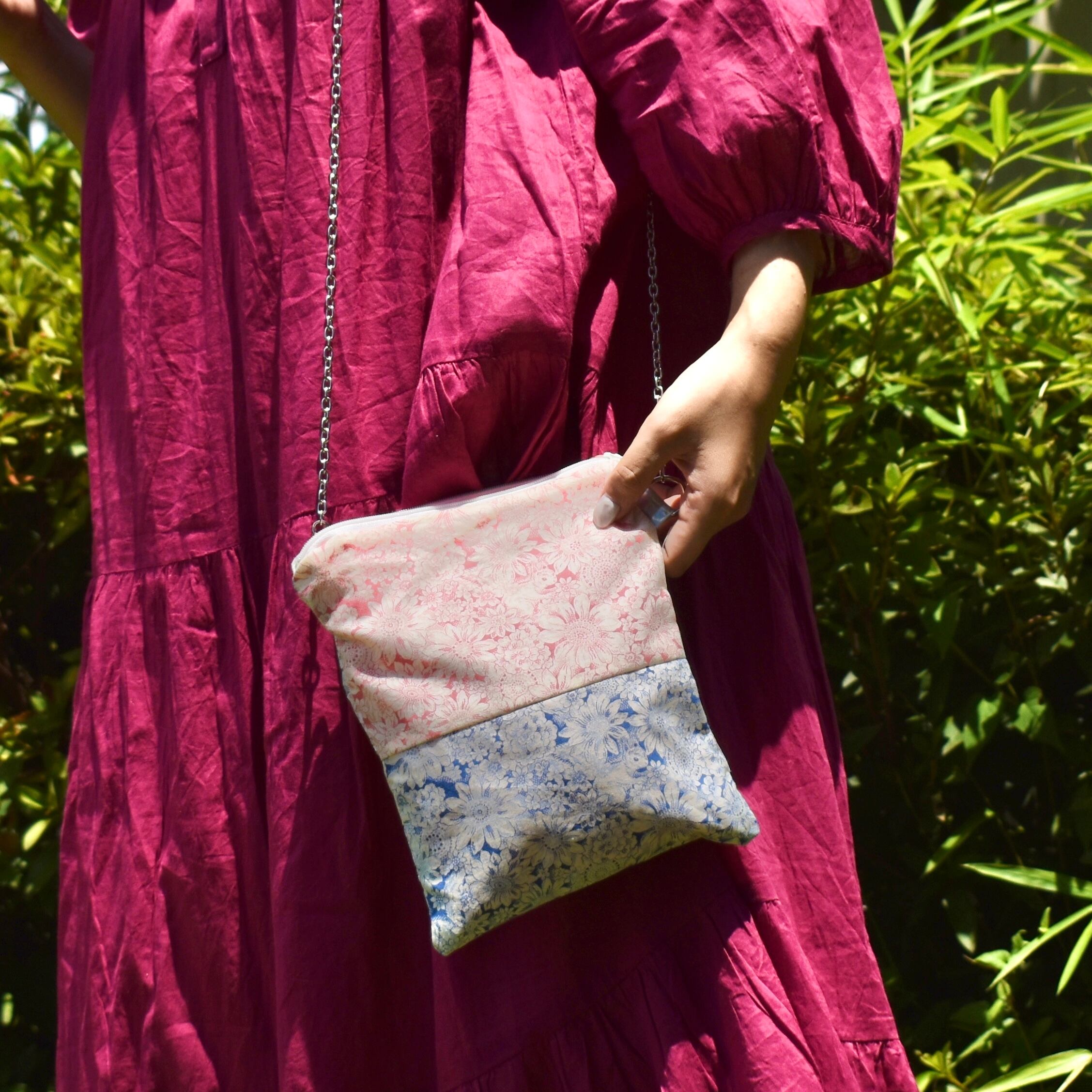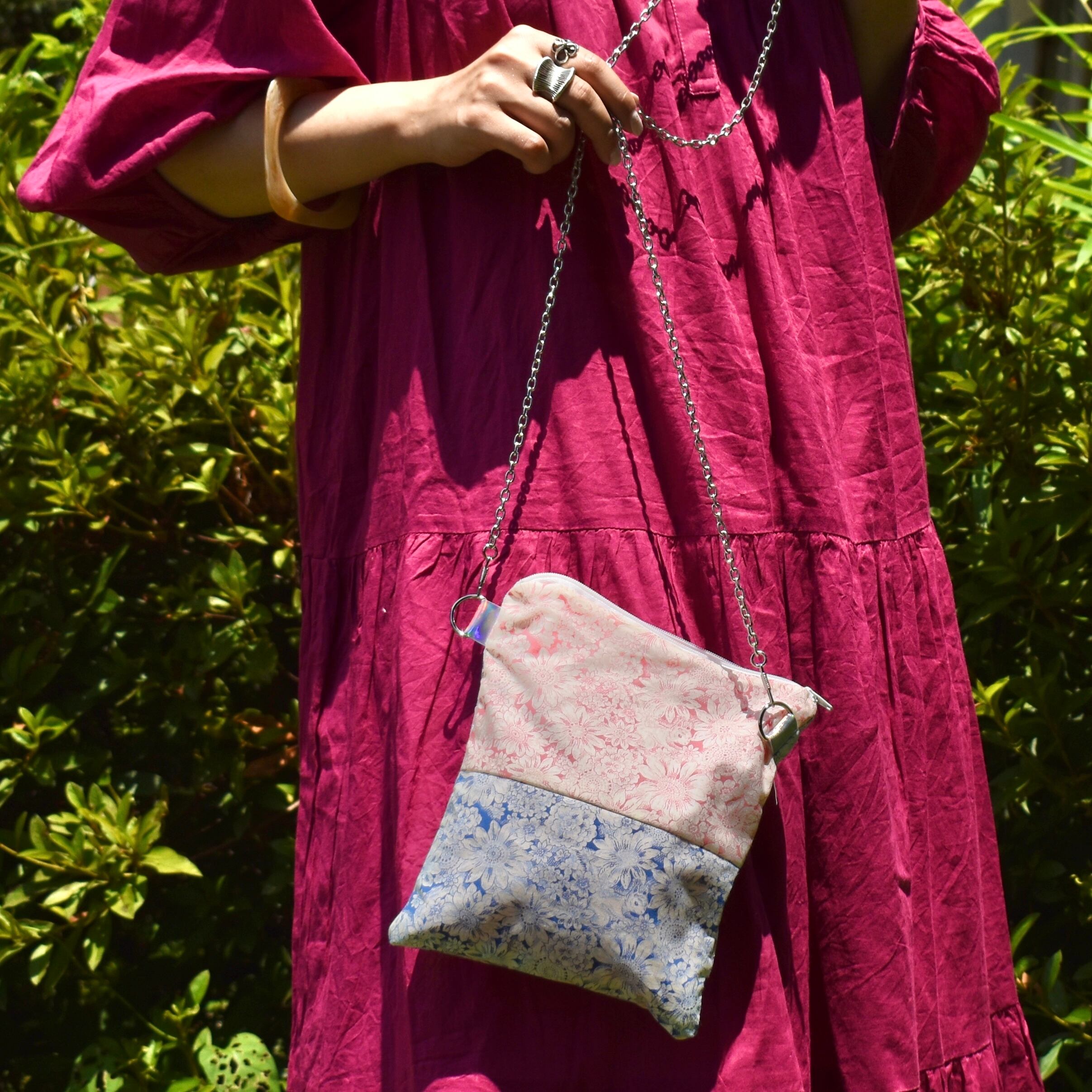 色違いの生地をパッチワークにしたショルダーバッグです。表と裏でデザインが違います。