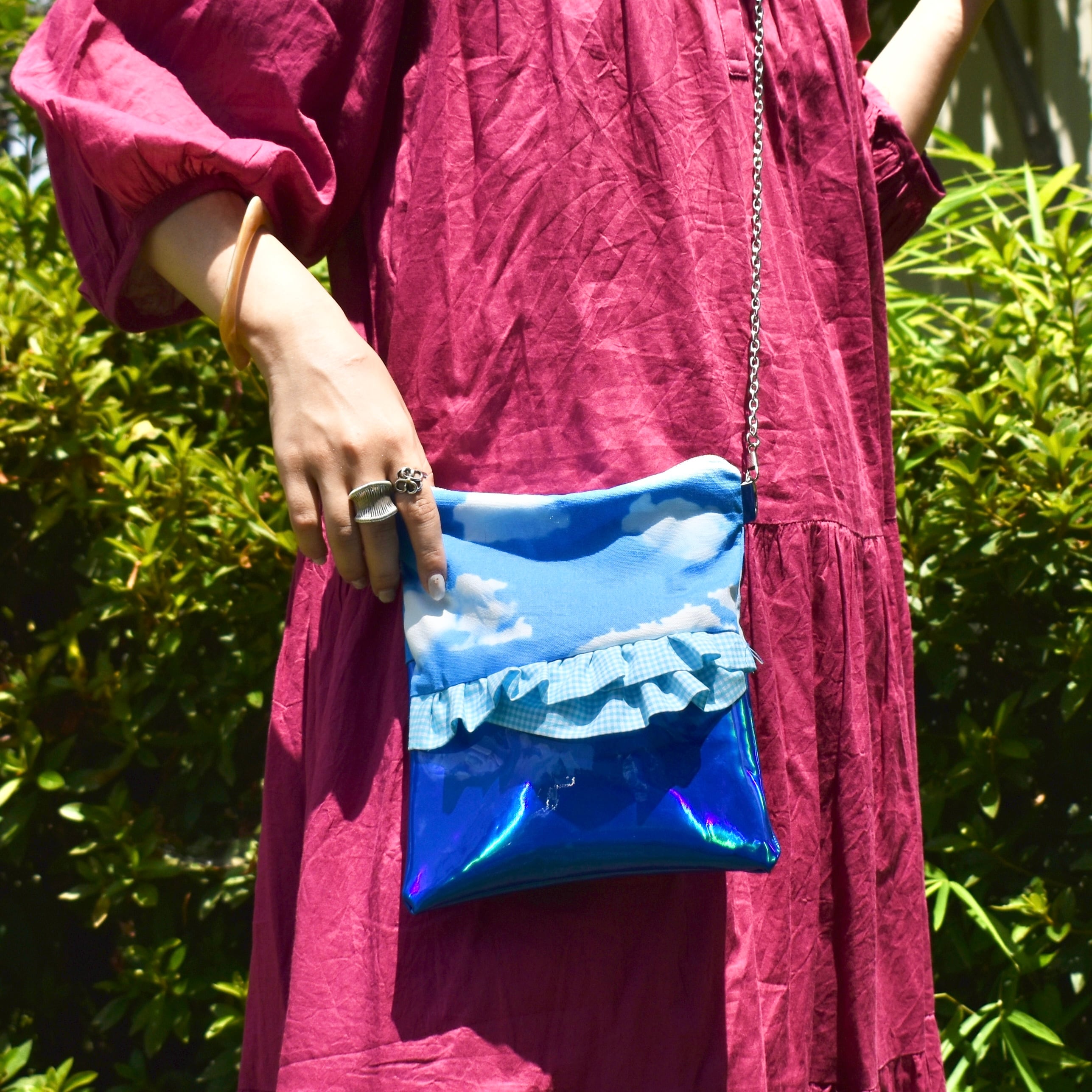 ななめカットの青空フリルショルダーバッグ