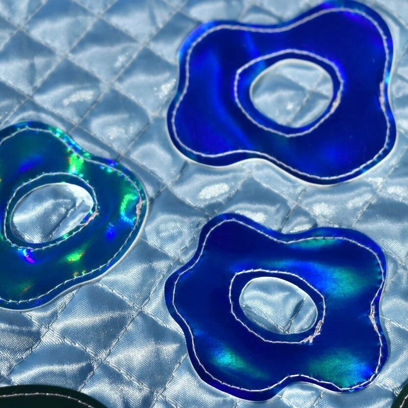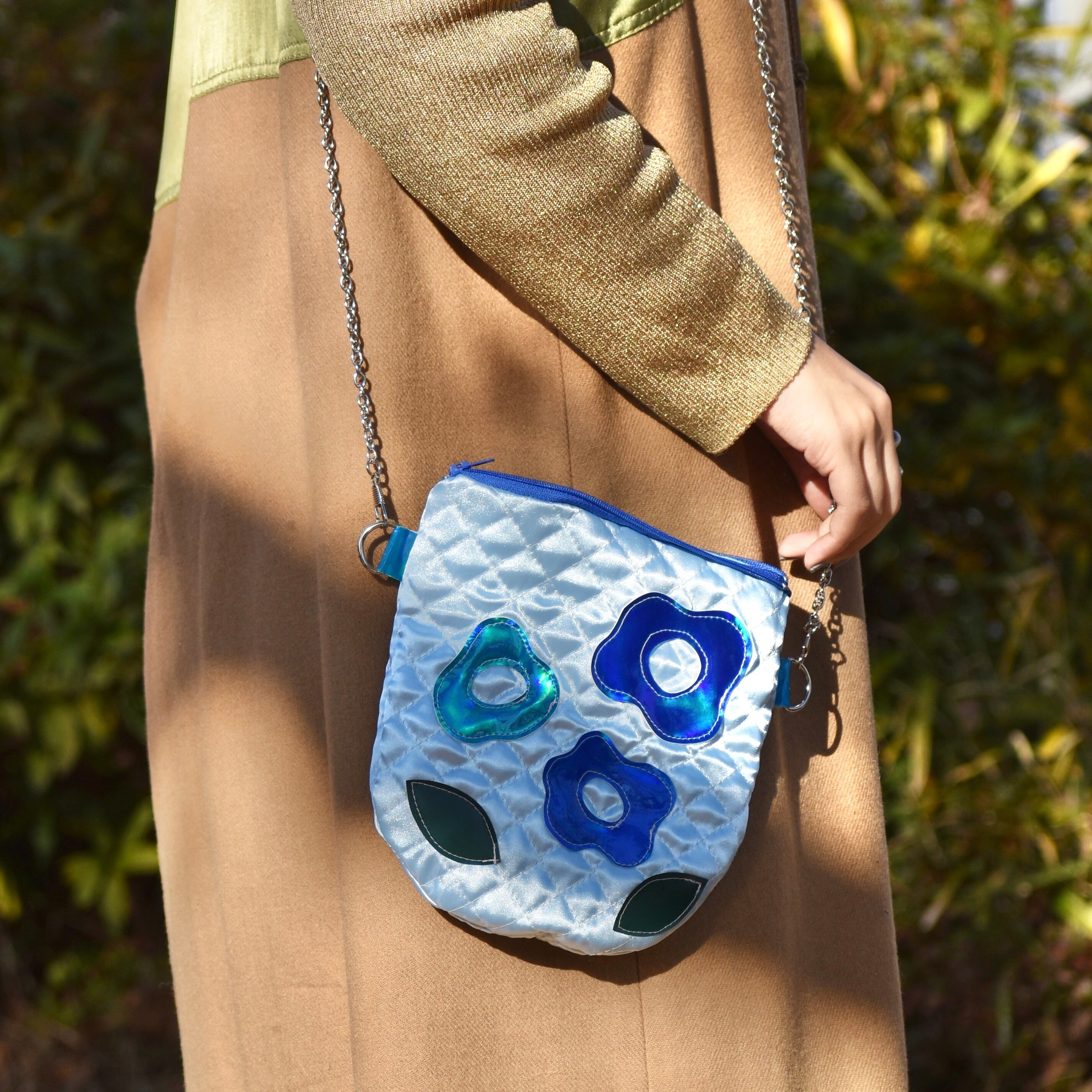 ゆる〜い自由曲線の可愛らしいお花がモチーフのショルダーバッグです。青と水色で色味を統一して涼しげに。
